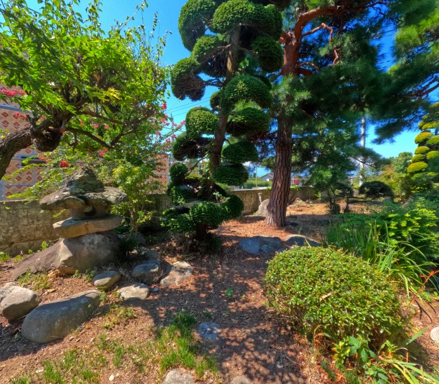 松をはじめ様々な樹木が植えられており良い雰囲気となります。因みに池もあります。