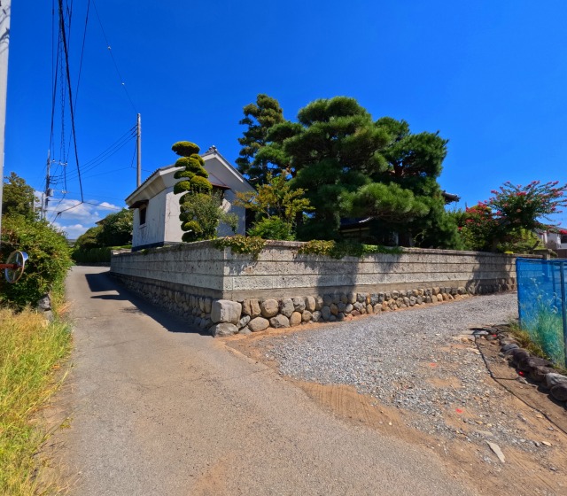 写真の右側の砕石敷きが進入路となりますが、場合によっては塀を取り除き拡張することも可能です。