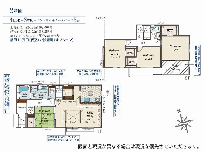 | 備考 | ※インナーバルコニー部分7.81㎡含む 建築確認番号/第R07SHC118736号 網戸11万円(税込)で設置可(オプション) ●その他法令/宅地造成等工事規制区域 ●引渡予定/2026年2月下旬 ※TVアンテナ(電波障害等によるケーブルTV、共聴アンテナ)の申込みはお客様負担となります。 ※電気の供給の為、敷地内に電柱及び支線が入る場合があります。 ※図面と現況の相違がある場合は現況優先にてご了承願います。 ※司法書士、土地家屋調査士は当社指定とさせていただきます。 ※網戸は東栄ホームサービスへの発注となります。尚表示価格は建物引渡20日前迄の申込が条件となります。 ※FIX窓・ドア(玄関・勝手口・テラス)は対象外となります。 ★全棟住宅設備機器修理サービス対象物件あんしんプラチナパック15年保証12万円(税込) ※現況と資料が異なる場合は現況を優先致します |
